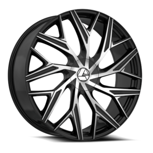 The AZA-527 offers a twisting, full-face, multi-spoke style with the spokes extending to the lip. These designs, available in gloss black machined or chrome finishes, offer sizes ranging from 20×8.5 to 30×9.5, providing ample options for those looking for a unique aesthetic to enhance their vehicle’s appearance.