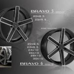 20, 22, 24, 26, 28, 30, Gima Wheels Brand: Gima Model: Bravo Size: 20×8.5, 22×9.5 5~lugs 20×8.5, 22×9.5, 24×10, 26×10, 28×10, 30×10 6~lugs Finish(s): Black Machined