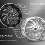 20, 24, Gima Wheels Brand: Gima Model: In-Flame Size: 20×8.5, 20×10.50, 22×9.0, 22×10.50, 24×9.5 5~lugs 20×8.5, 22×9.5, 24×10, 26×10, 28×10 6~lugs Finish(s): Black Machined, Black Milled, Black, Chrome