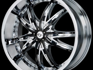 Style: Blitz Brand: Gianna Size: 18X7.5, 20X8.5, 20X9.5, 22X8.5, 22X9.5, 24X10, 26X10 Finish(s): Chrome – Black Chrome Price: Call Us Finishes: